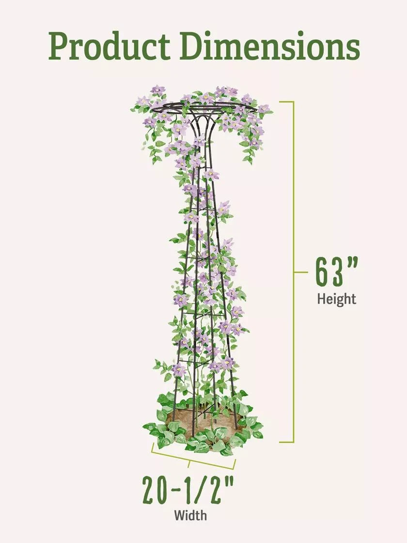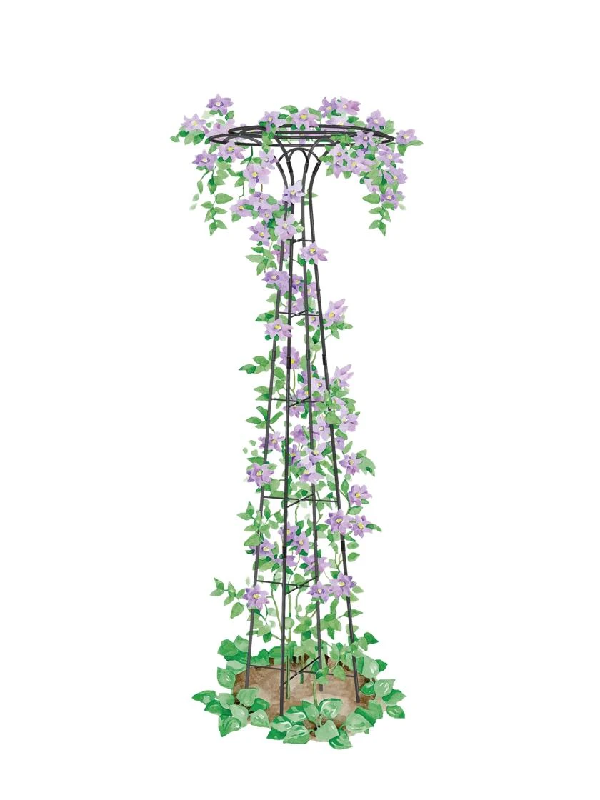 Planted with compact varieties of clematis, annual vines or climbing roses, this striking tuteur adds vertical interest and creates a stunning focal point in your landscape. The trellis’s clean lines and unique shape let plants take center stage. We recommend securing with Extra Tall Earth Staples, sold separately.